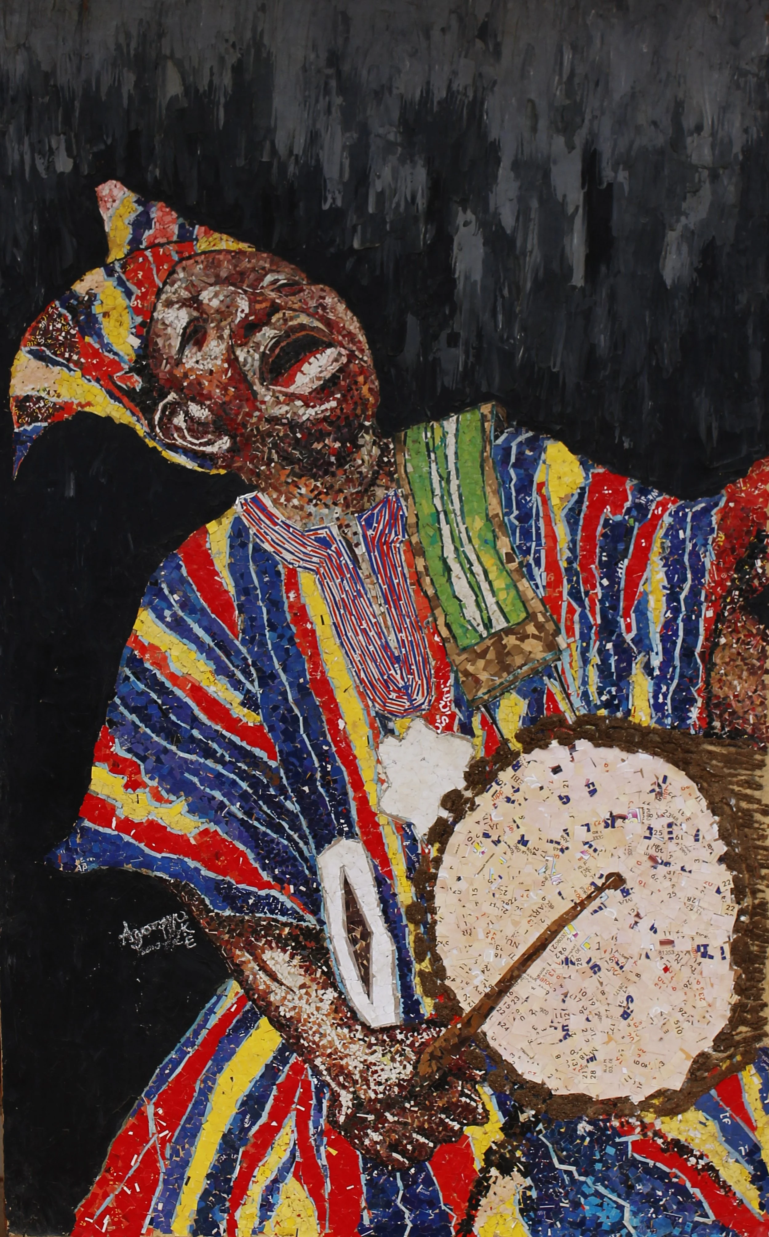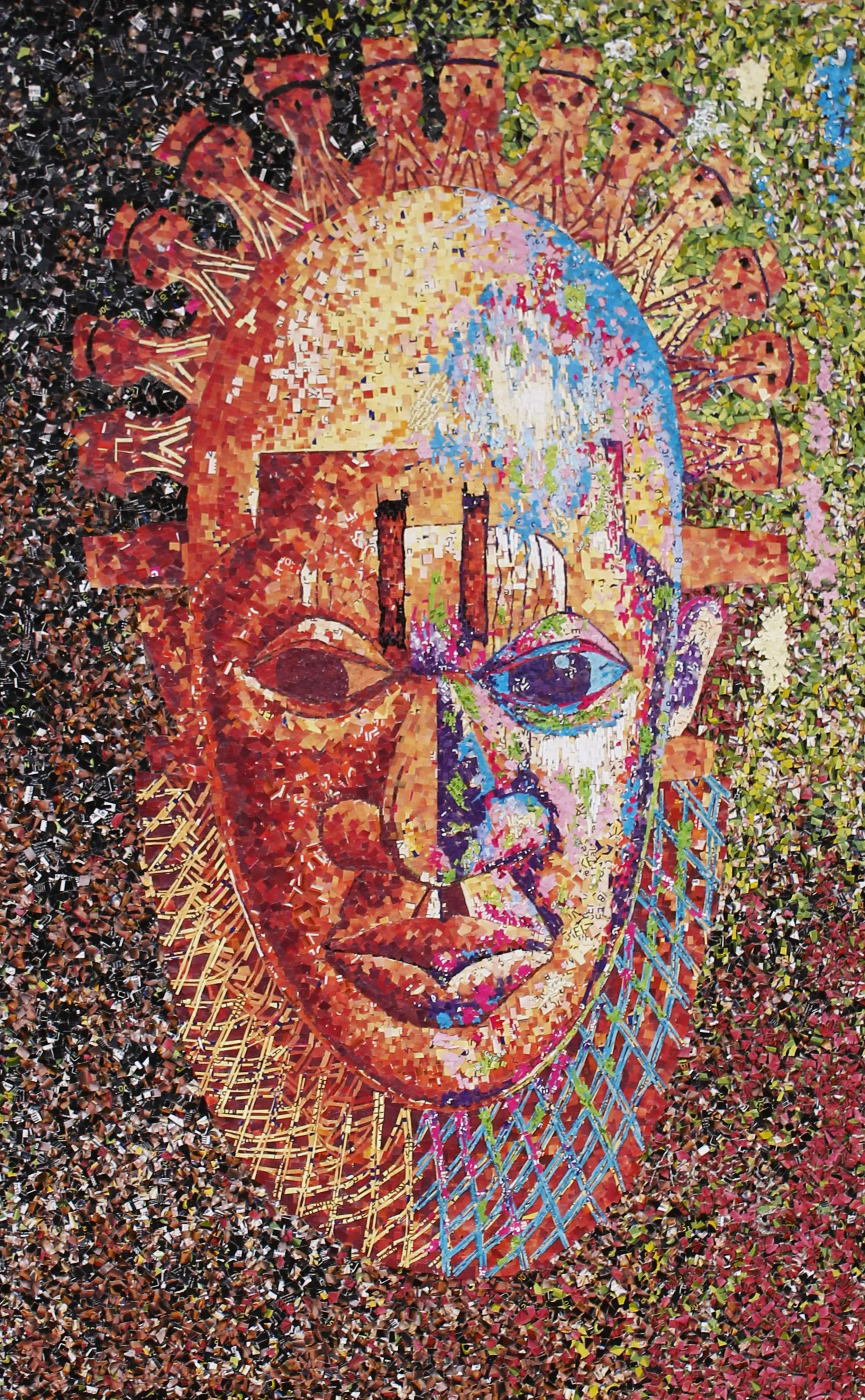 The high cost of paint in Nigeria led Armstrong to experiment with materials thus utilizing political posters made from papers to form intricate collage paintings. He wields his creativity like a magic wand, transforming discarded paper waste into exquisite works of art that captivate and inspire. With a passion for keeping his environment pristine, he has developed a unique flair for recycling paper, turning what others see as refuse into priceless masterpieces.