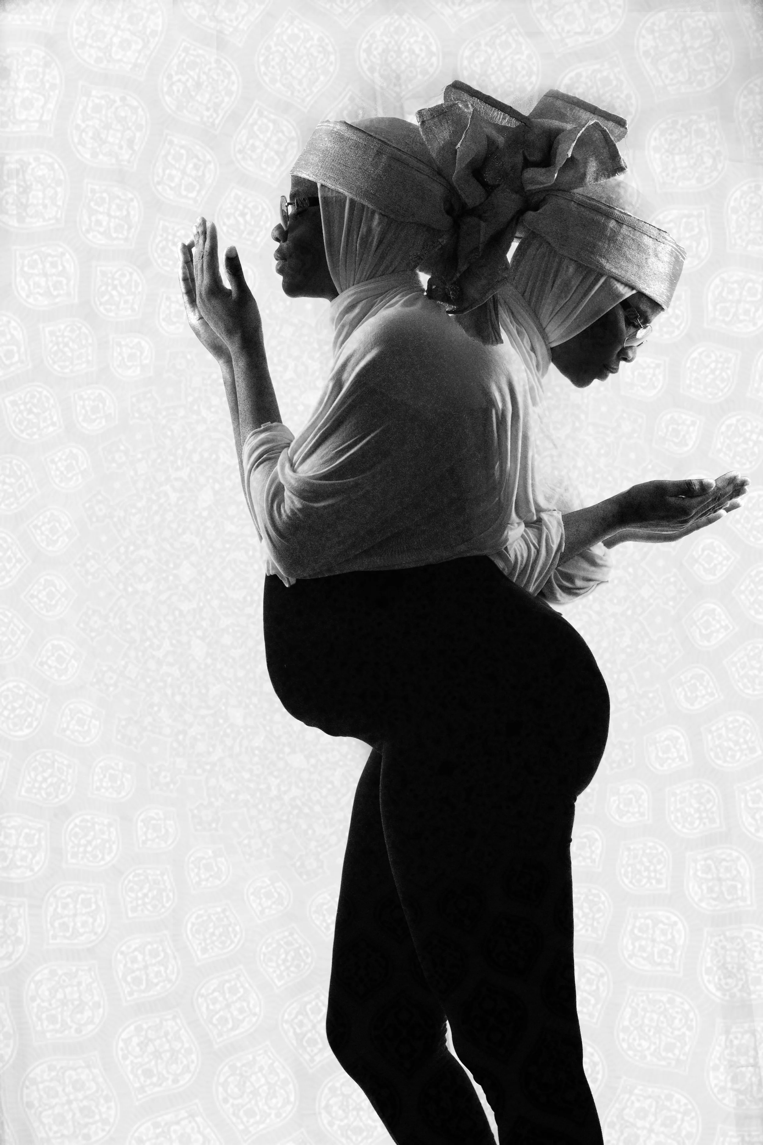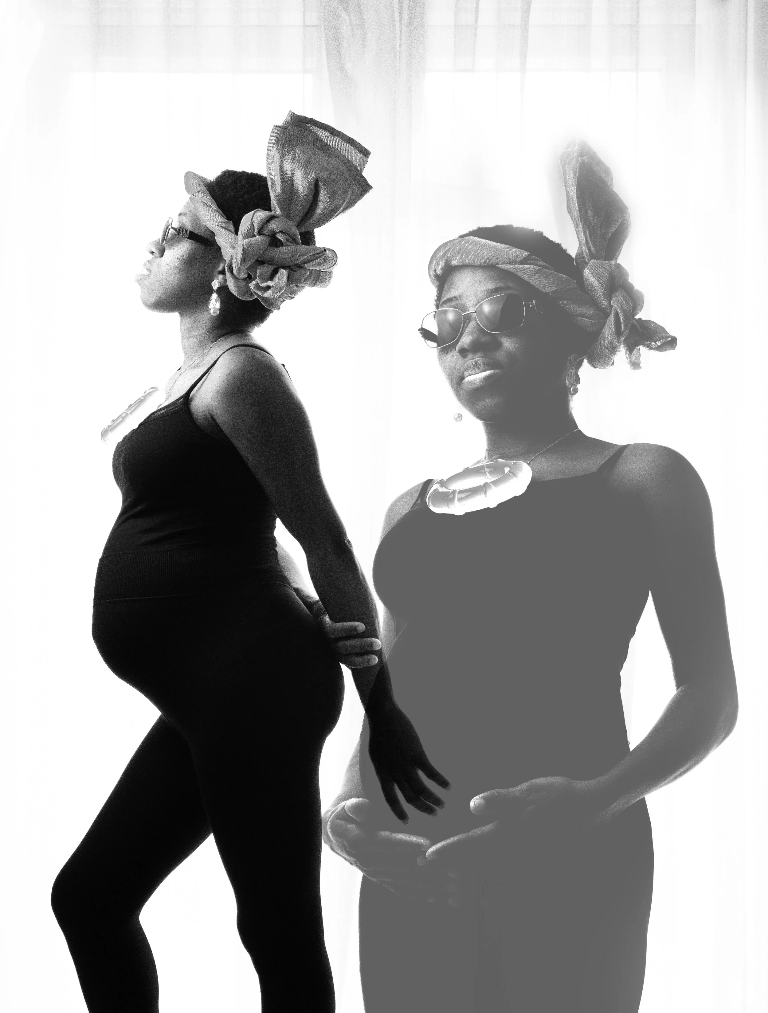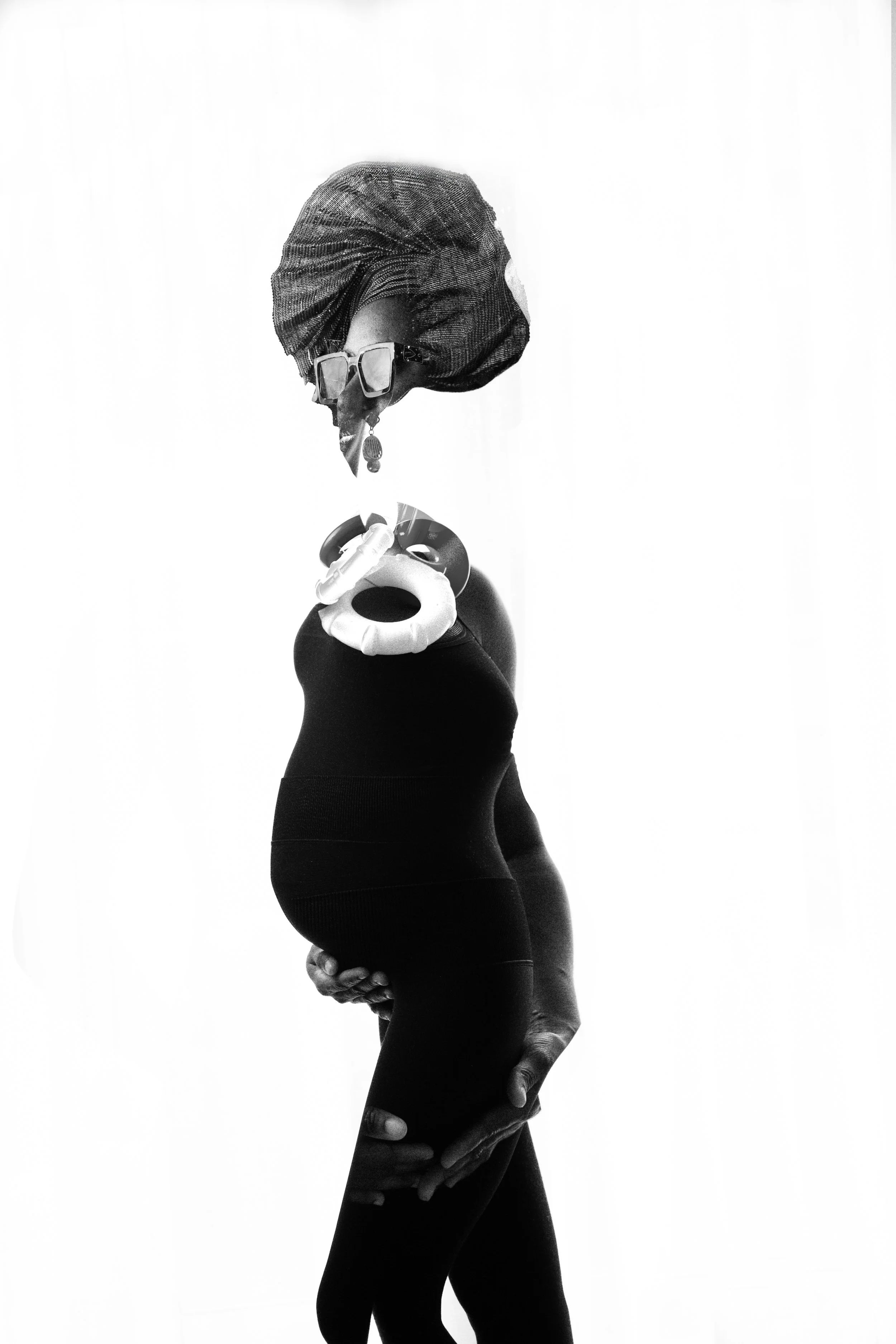 African Preggy Ready To Party,' Kikelomo celebrates the beauty of pregnancy through the lens of African culture. Each image radiates with the vibrancy of traditional African headgear, symbolizing strength, heritage, and femininity. The addition of sunglasses adds a contemporary twist, reflecting the modern woman's confidence and flair. Through this fusion of tradition and modernity, She honors the journey of motherhood with exuberance and style, inviting viewers to join in the festive spirit of anticipation and celebration."