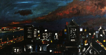 “Marina at Night” casts a hauntingly beautiful spell, capturing the essence of Nigeria’s urban landscape after dusk. The skyline of Marina Lagos emerges from the canvas, illuminated by sporadic lights amidst a sea of darkness. Bennett’s masterful use of shadow and light conjures a sense of foreboding, inviting viewers to contemplate the complexities of life in a country plagued by inconsistent power supply. The contrast between the buildings bathed in darkness and those faintly illuminated by generators speaks volumes about the resilience and resourcefulness of Nigerians in the face of adversity.