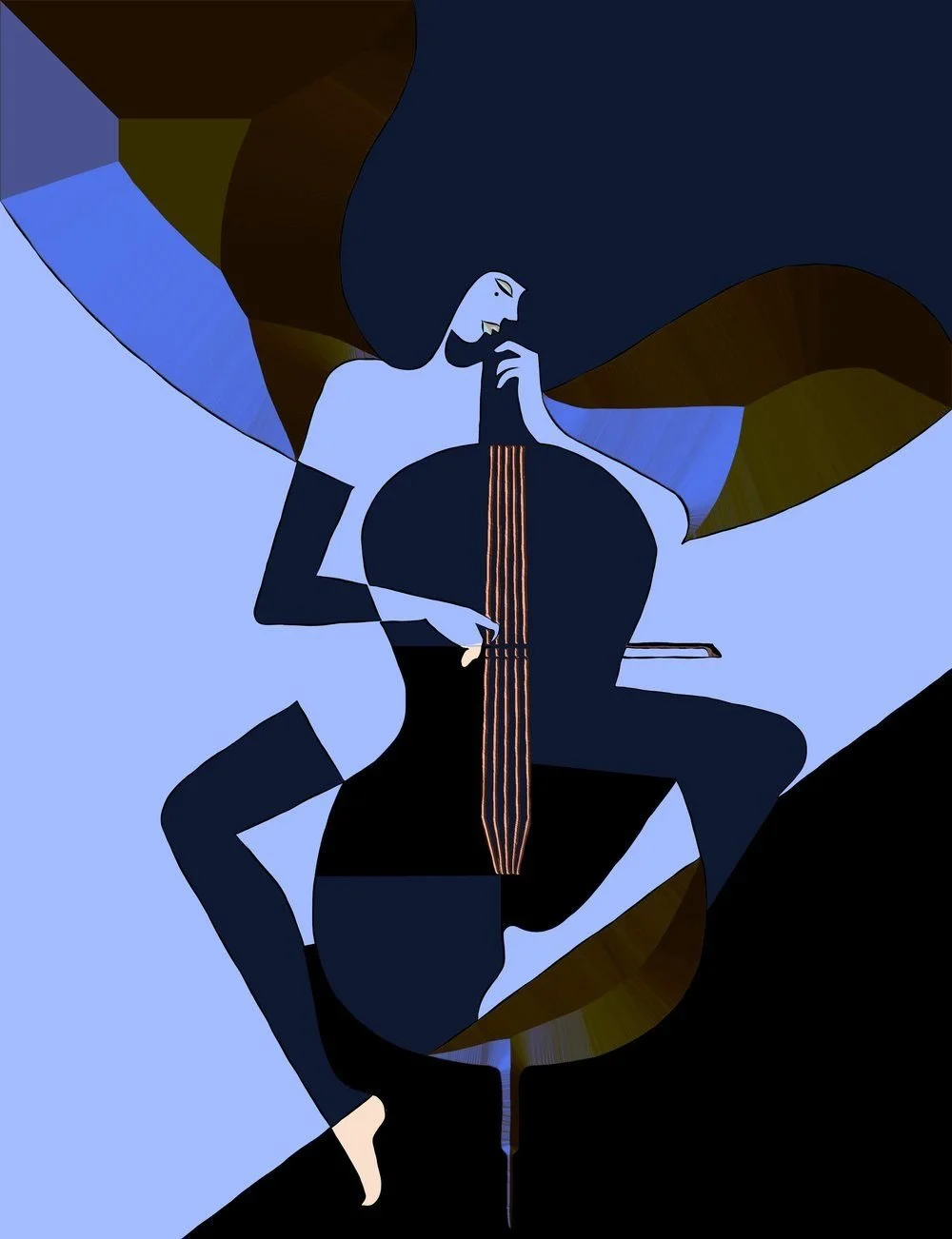 One of the standout pieces from the exhibition is “Moi Acoustic,” a captivating portrayal of a young woman playing the cello. The painting exudes a sense of tranquility, with its cool blue tones enveloping the viewer in a soothing embrace. Favour’s use of multiple shades of blue adds depth and dimension to the piece, enhancing its charm and allure.