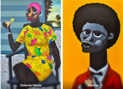 “Dolce far Niente” transports us to a tranquil corner of African domesticity, where a woman reclines in leisure, savoring the sweetness of idleness. Clad in resplendent attire, with her hair adorned in shades of pink, she epitomizes the allure of carefree indulgence. Against a backdrop adorned with a painting, the scene encapsulates the essence of relaxation, prompting reflection on the pursuit of simple pleasures in a fast-paced world.