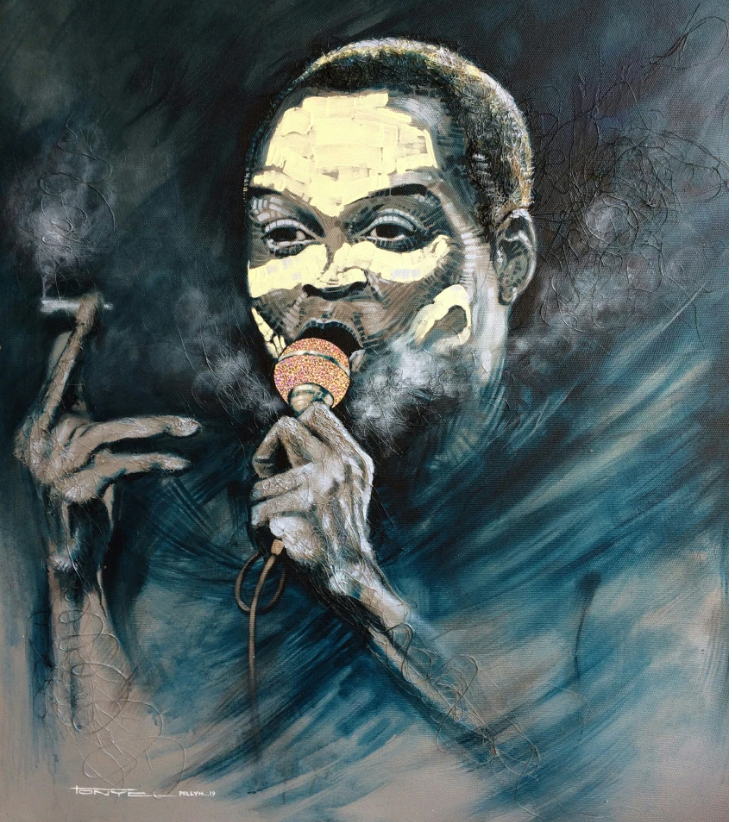 In a departure from the “Blue Rhapsody” series, Pollyn’s recent digital exhibition at madeke introduces two new works that showcase the artist’s versatility and thematic range. “Afro Melody” pays homage to the rich cultural heritage of traditional African music through a portrait of the legendary Fela Kuti. Here, Pollyn seamlessly blends elements of ancient and contemporary African culture, capturing the spirit of rebellion and innovation synonymous with the Afrobeat movement.
