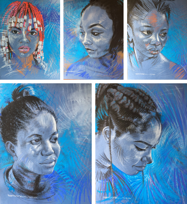 Overall, Tonye Pollyn’s “Blue Rhapsody” series and accompanying works demonstrate a profound understanding of the human condition and a mastery of visual storytelling. Through his use of color, form, and symbolism, Pollyn invites viewers to contemplate the complexities of African identity, resilience, and the enduring power of creativity.